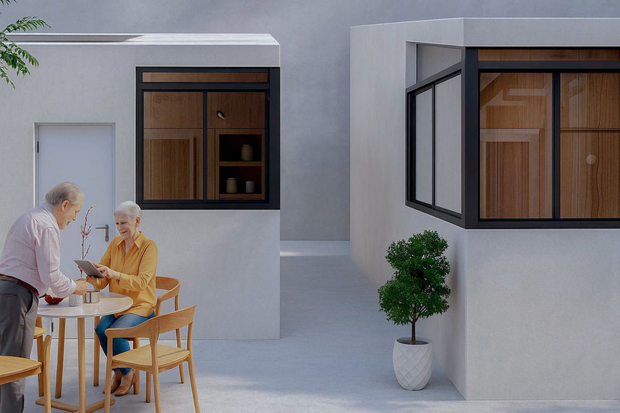 Modular houses need to be placed in such a way that social activities are taken into account. For older people, socialising is extremely important. The space left between modules can be used entirely as a gathering place for social activities. The position of the windows in the house also promotes communication between neighbours.